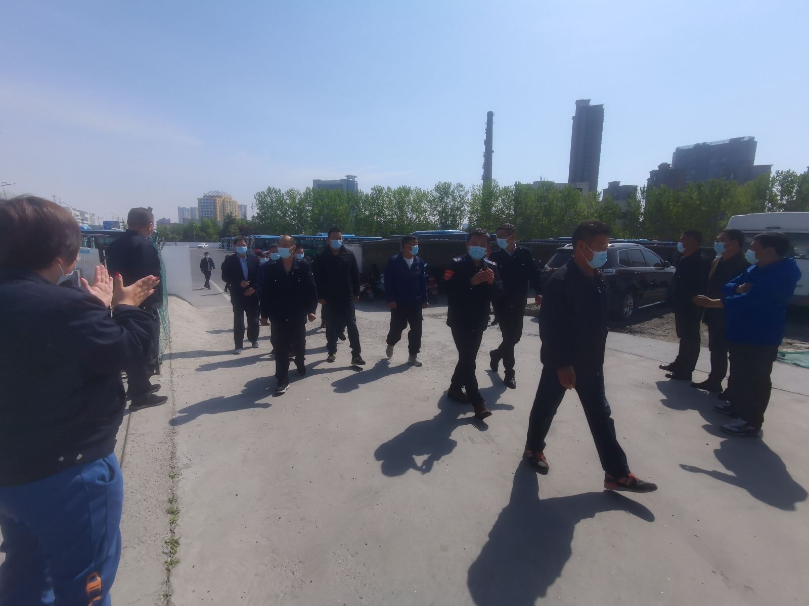 疫情就是命令,防控就是責任。3月5日疫情突襲港城,公交集團公交事業一部接到上級命令,立即安排60臺車輛運力,66名駕駛運力參加轉運工作任務。不忘初心,不辱使命,4月17日上午,他們平安歸來,公交事業一部經理朱華麗帶領領導班子成員、各科室、分公司負責人在財校停車場熱烈歡迎第一批疫情轉運的15名駕駛員集中隔離結束平安回家。