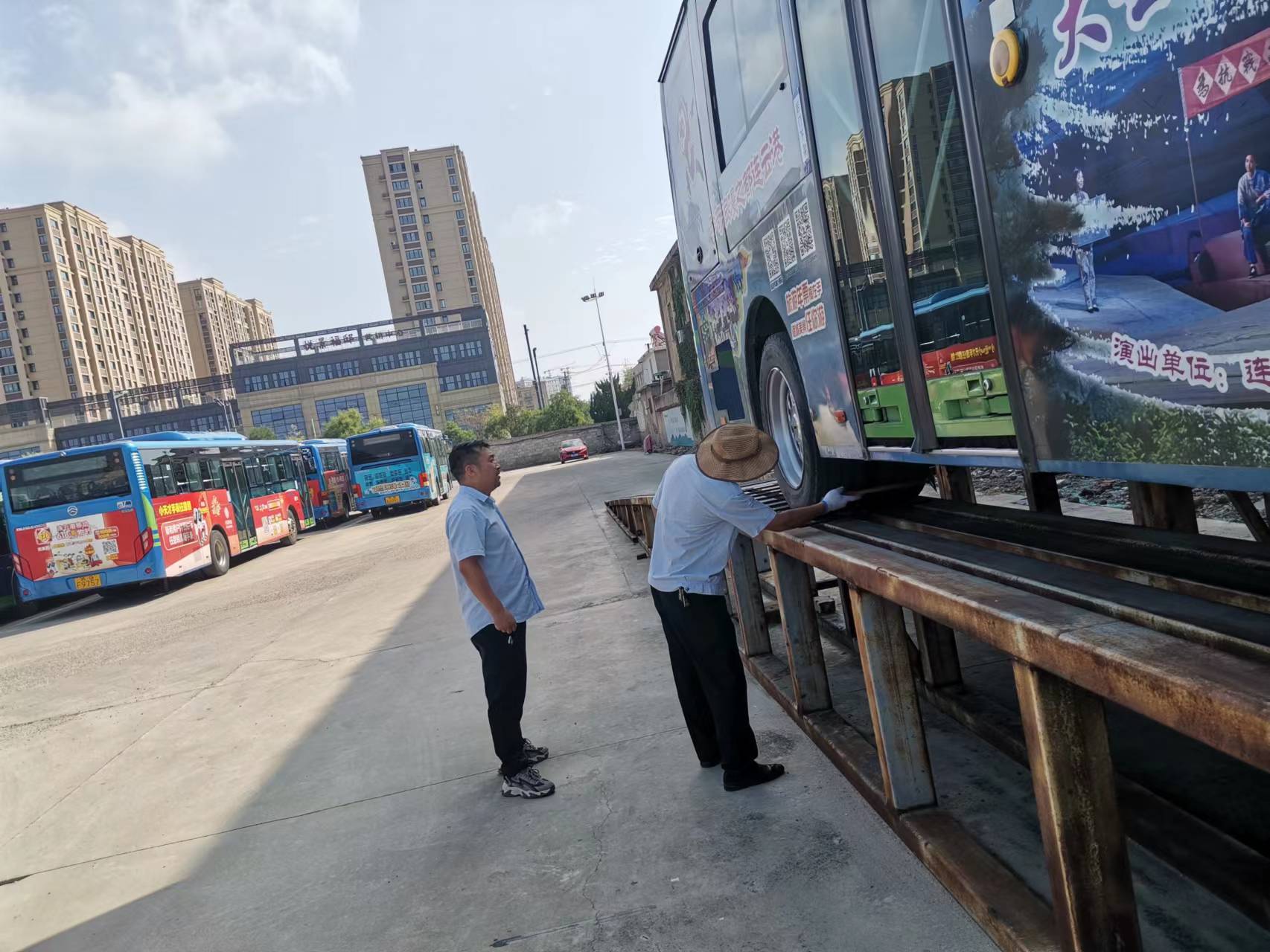 現場,檢查人員著重查看了車輛得技術狀況,內容包括轉向、傳動、制動、輪胎、底盤、燈光、雨刮器、車輛燃油箱油管、電池倉、電器導線,以及保險絲等安全部件。同時,還重點檢查了隨車消防器具、安全錘、破玻器等安全設施,確保每輛營運車輛安全設施設備齊全有效。此外,檢查人員還對車輛車容車貌進行查看,確保車內外環境衛生整潔有序。