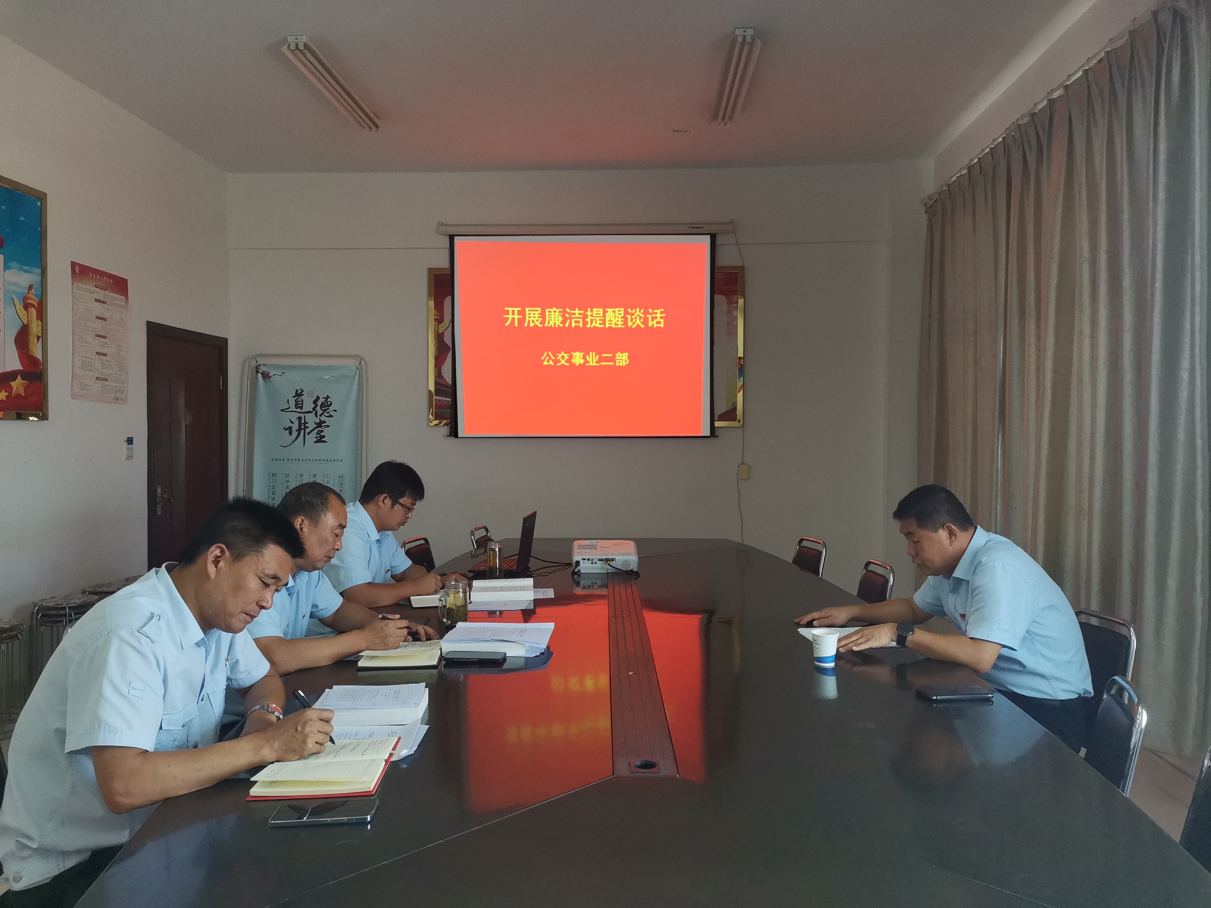 近期,公交集團在集團各級領(lǐng)導(dǎo)班子、中層干部、三級干部共107人中開展了廉潔提醒談話,督促領(lǐng)導(dǎo)干部嚴(yán)以用權(quán)、廉潔從業(yè)、履職盡責(zé)。