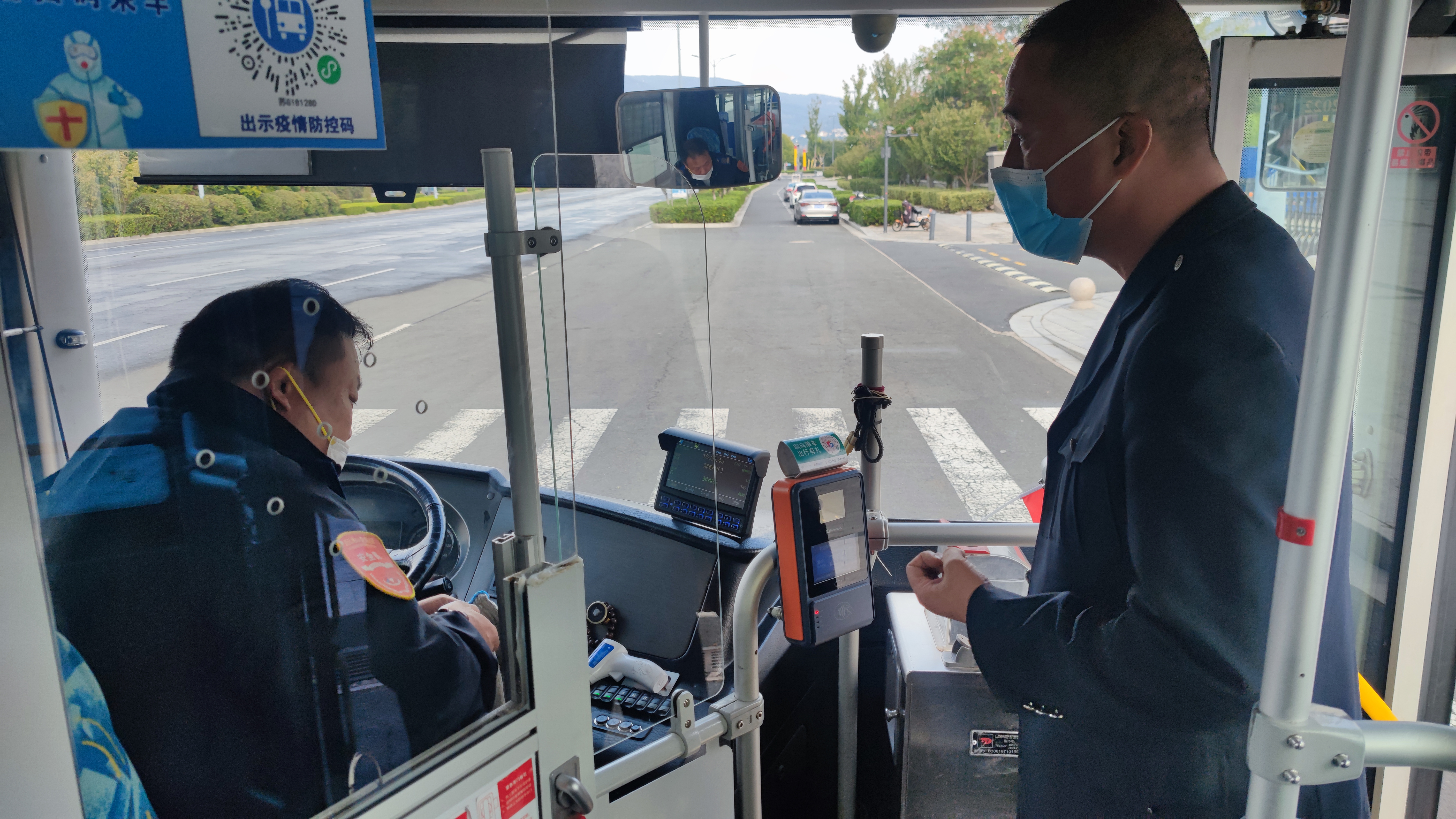檢查過程中,工作人員各司其職,認真檢查,并與駕駛員面對面進行交流,了解線路運營情況及平時所遇到的問題,對其進行詳細記錄并一一解答。在交談中,檢查人員耐心叮囑駕駛員,一是在日常營運中要將車輛衛生清掃作為常態化工作,做到利用休息時間帶眼查、隨手擦,時刻保持車輛衛生高標準。二是在行車途中要時刻提高安全意識,以安全為前提做好優質服務工作,提高乘客出行滿意度,樹立公交品牌形象。三是疫情防控形式嚴峻,要做好車輛消殺工作,了解疫情防護所有應知應會內容,做到疫情防控、創文工作雙向共進。