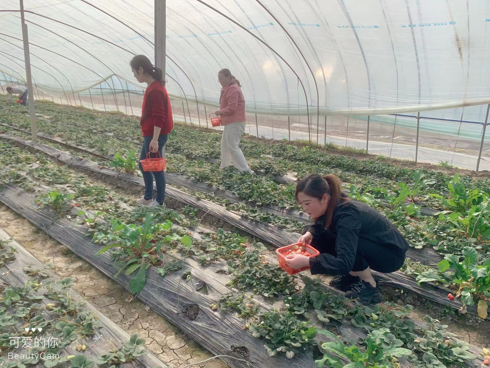 沐三月和風(fēng),覓草莓清香。草莓大棚內(nèi),青草吐綠、草莓飄紅、果香芬芳。在草莓大棚內(nèi)簡單集合清點人數(shù)后,女同胞們便爭先恐后跨進(jìn)草莓叢中,開始采摘之旅。小伙伴們每人提一個小籃,小心翼翼地走在田壟間,不時地挑揀、對比著,說笑間,將一個個香甜可人的草莓收入自己籃中。大家一邊摘草莓一邊互相交流,充分感受到清新的田園氣息,體驗了采摘草莓、品嘗鮮果的樂趣,陶醉于春意萌動的生機(jī)。
