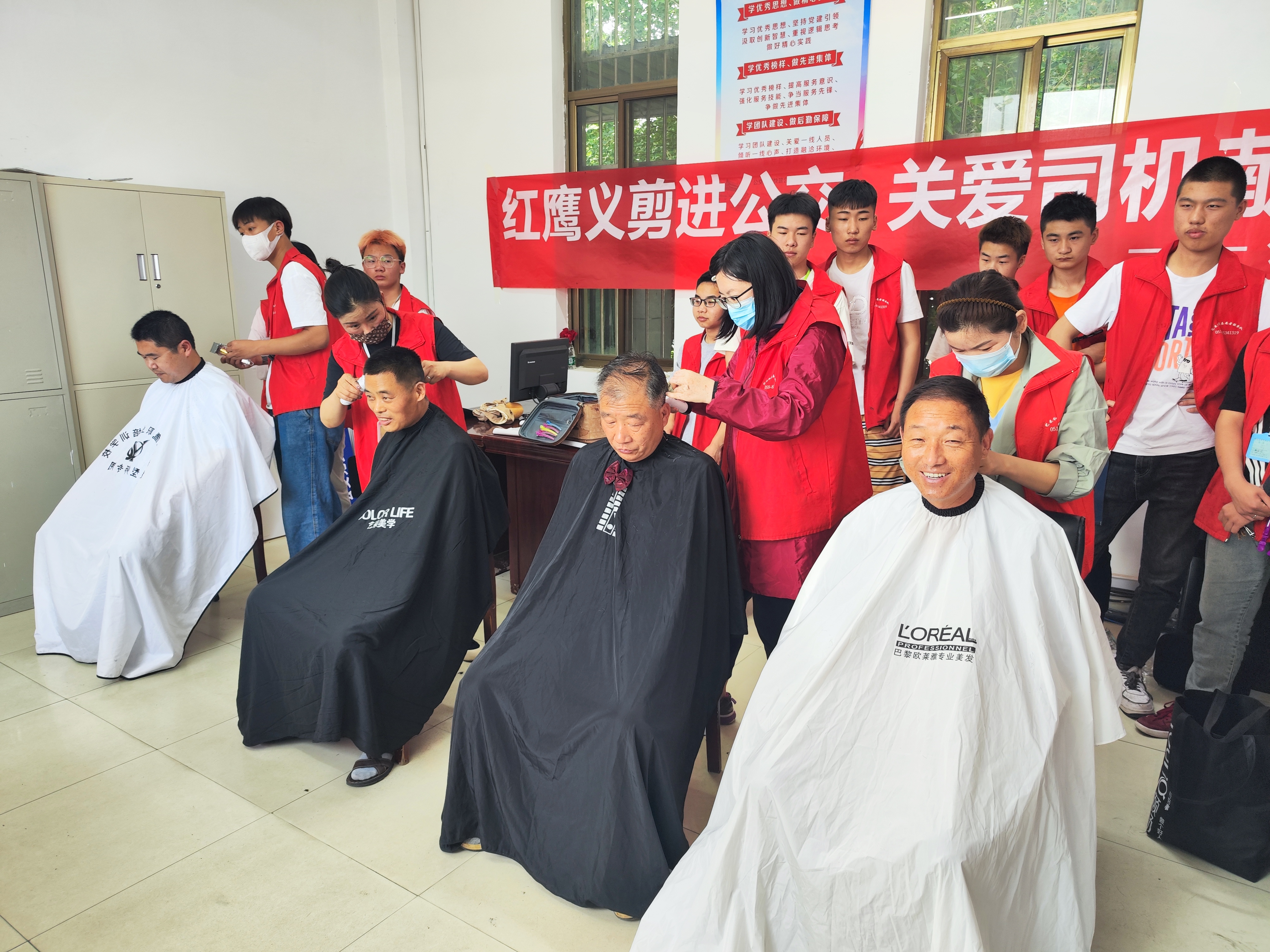 在海州客運總站和西城公交站的駕駛員休息室里,剪刀、推子、梳子、圍布、座椅等工具一應俱全,理發(fā)師們一邊給駕駛員們洗好頭發(fā),一邊耐心的詢問駕駛員想要的發(fā)型。伴隨著清脆的剪刀聲和上下翻飛的梳子,不一會兒,一位位精神抖擻的駕駛員就出現(xiàn)在了大家的眼前,見此情景,來理發(fā)的駕駛員們越來越多,隊伍越來越長。在等待過程中,藝采紅鷹美發(fā)學校還安排專業(yè)的技師給駕駛員們做推拿和針灸服務,享受過理發(fā)服務的駕駛員們紛紛表示,由于工作性質(zhì)原因,經(jīng)常會因為忙碌錯過理發(fā)店的營業(yè)時間,今天的義剪雖然只是解決了生活的小問題,但是卻讓自己感受到了公交集團這個大家庭的溫馨和關愛,今后將以嶄新的精神面貌投入到工作中去,為廣大市民提供更加優(yōu)質(zhì)的乘車服務。