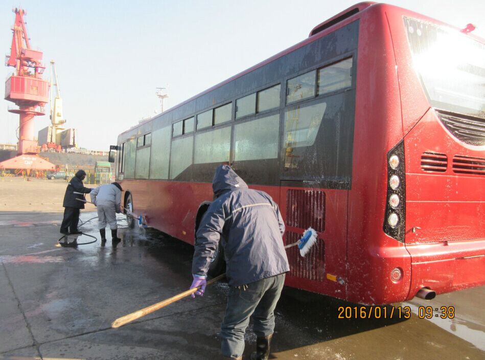 來源:綜合辦 作者:倪子棠 1月22-24日我市遭遇降雪、冰凍極寒天氣,最低溫度在零下15度,是港城三十年難得一遇的嚴寒,給公交運輸工作帶來巨大困難和挑戰(zhàn)。公交人不畏嚴寒奮斗在公交一線,全力保障市民安全出行。 面對冰雪突襲給公交運營安全帶來的巨大壓力,為切實做好防寒防凍工作,各基層單位提前啟動雨雪惡劣天氣應急預案,并召開駕駛員會議,要求提前做好冰凍天氣注意事項和各項安全措施,公司組織全體安管人員于22日晚在各停車場等到最后一班車回場后收班,并對停車場局部積雪嚴重部位進行清掃,確保第二天的正常生產(chǎn)運營。快速公交為保證23日早間車輛能正常運營,所有行管人員于早晨5點,全部上線到制定的站臺、路口,及時在BRT專用道掃雪、撒鹽保障車輛行駛,協(xié)助站務員清掃站臺積雪,保障乘客安全進出站,及時引導乘客安全上車,全力保證市民安全、順利出行。海州公司蔣衛(wèi)新、江鯉,帶領宋洪祥、楊濤、顧維瑜在首班車發(fā)車前到達站點,協(xié)助車隊發(fā)動車輛,對發(fā)動不著的車輛,及時動手排除故障,確保車輛安全運行;新浦公司經(jīng)理朱華麗在各車場對所有駕駛員做好安全交待,提醒駕駛員冰凍天氣,路面濕滑,要控制車速,不要猛加油門、猛踩剎車,并組織安管人員上路上線查看路況,現(xiàn)場管理,協(xié)助駕駛員做好危險品查堵和車廂內(nèi)防恐維穩(wěn)工作;東部公交管理人員不懼嚴寒,主動留守公司值班,每晚定時做好車輛預熱,確保車輛發(fā)車時能正常開啟,盡全力保障公司正常生產(chǎn);維修公司班子成員分成四個小組,23、24日兩天早上六點多鐘趕到運營公司搶修被凍車輛,帶領修理工到各站點、停車場、道路上搶修車輛,并及時登記車輛被凍情況,兩天共搶修車輛56臺次;大浦保養(yǎng)廠又迎來近200臺的港口出口任務,在惡劣天氣情況下,剛噴上水的車立刻就開始結冰,給清洗車輛加大了難度,雖然遭受著凌冽寒風的侵襲,但是完成驗車、解決車輛故障、洗車、拆包倒車鏡等一套工序,大家絲毫沒有松懈,圓滿完成任務。 驟降大雪無疑給充電工們的工作帶來了極大的考驗。場站建設管理辦公室主任許增磊早早來到場地和充電工們一起,解決充電站運營中的種種問題,面對前來充電的車輛,充電工們依舊滿懷熱情,用最好的態(tài)度給司機師傅們提供服務。 在這極寒的惡劣天氣,通過公司各基層單位干部員工和一線駕駛員的共同努力,盡管放慢了車速緩慢運行,但是保障了全市乘客的安全出行.
