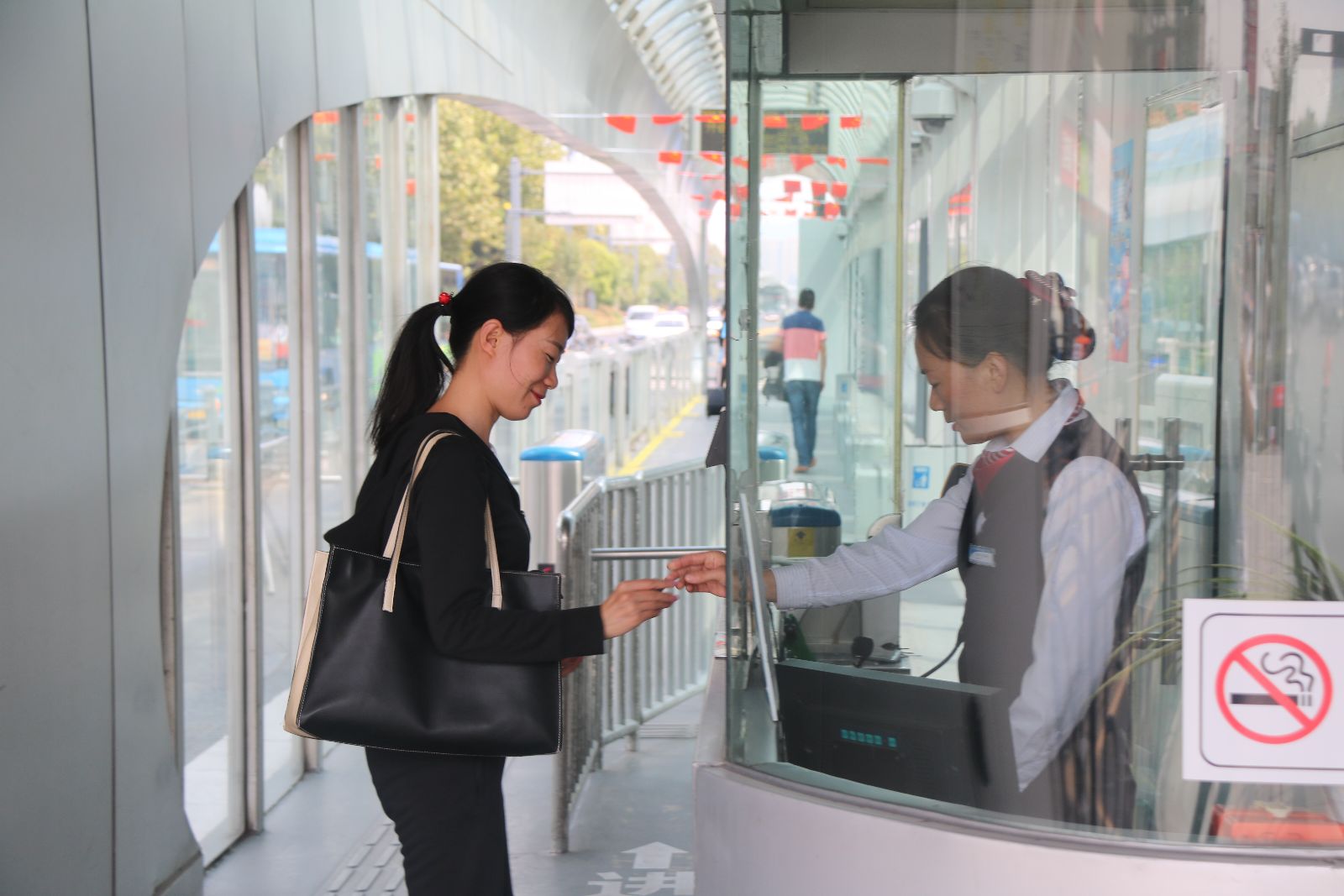 作為BRT的一名站務(wù)員,看到身邊的文明在悄悄的發(fā)生,心中充滿了一種喜悅和自豪。想起以前,乘坐公交車時(shí),人們一擁而上,不排隊(duì)的現(xiàn)象經(jīng)常發(fā)生,前推后擠,身材瘦弱的人總會(huì)被擠倒,上車后車廂內(nèi)充滿了喧嘩與吵鬧,沒有片刻安寧,乘坐公交出行是一件痛苦的事情。2012年我市開通了BRT快速公交,道路變得寬敞了,公交車輛也已換成嶄新的,如今純電動(dòng)的綠色環(huán)保公交車也已運(yùn)行,港城的人們出行更加方便,而乘客文明乘車的行為也有了很大的改觀,有公交卡的人依次刷卡進(jìn)站,沒卡的群眾投幣進(jìn)站,人們也開始自覺的排隊(duì),BRT站臺(tái)內(nèi)少了許喧嘩,多了份文明。雖然有時(shí)BRT車內(nèi)也有不文明的行為出現(xiàn),但大多數(shù)人都能遵守秩序,體現(xiàn)文明,做到不干擾他人。遇到老人或兒童乘車,經(jīng)常有乘客能主動(dòng)讓座,尤其是年輕人,雖然他們忙碌,辛苦,但能主動(dòng)關(guān)心和體恤老人和兒童,本身就是一種文明素質(zhì)的體現(xiàn)。當(dāng)文明成為一種習(xí)慣時(shí),那我們的社會(huì)將變得更加和諧和健康。在我日常的站務(wù)執(zhí)行中,經(jīng)常能遇到個(gè)別乘客攜帶違禁物品乘車,經(jīng)過耐心的解釋與勸導(dǎo),乘客們都能聽從規(guī)勸,不再攜帶危險(xiǎn)品上車。在站臺(tái)內(nèi)候車的群眾,雖然也有抽煙的,經(jīng)過解說后,都能自覺的服從我們乘務(wù)人員的勸導(dǎo),主動(dòng)掐滅煙蒂。吐痰、亂扔果皮的現(xiàn)象也已基本杜絕。偶然遇到有危害社會(huì)及群眾的事件時(shí),很多乘客都能挺身而出,維護(hù)社會(huì)正義。這都是港城人民自BRT 開通以來,取得的文明改變。