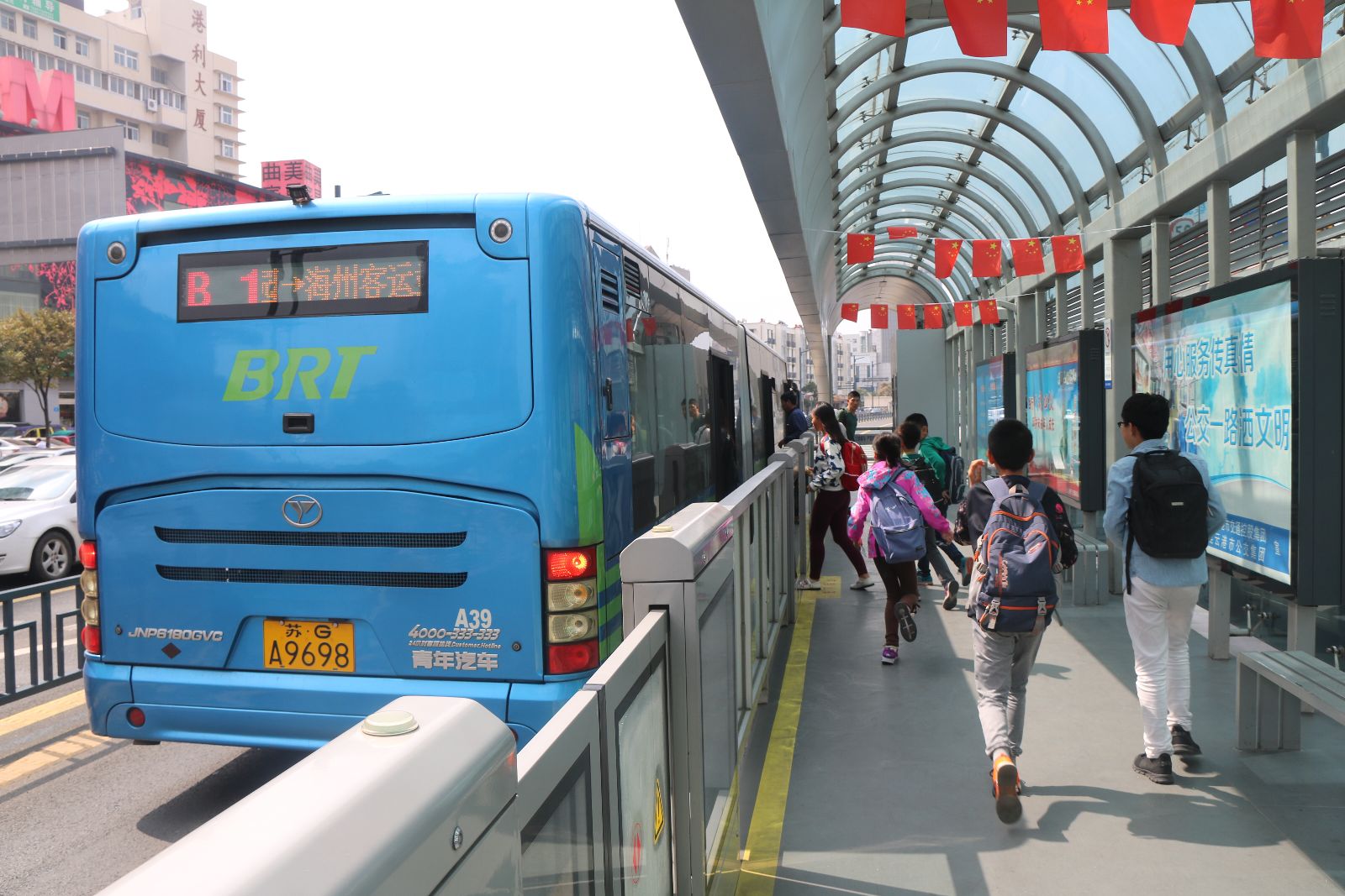上下班高峰時(shí)段,每天BRT站臺(tái)上都密密麻麻站滿了焦急候車的乘客。每當(dāng)一輛輛公交車進(jìn)站時(shí),車門打開的瞬間,下車的乘客們從后門依次走出,上車的乘客按順序依次從前門進(jìn)車,老人兒童有人攙扶,年輕人禮讓老年人,這是我每天都能看到的一幕。