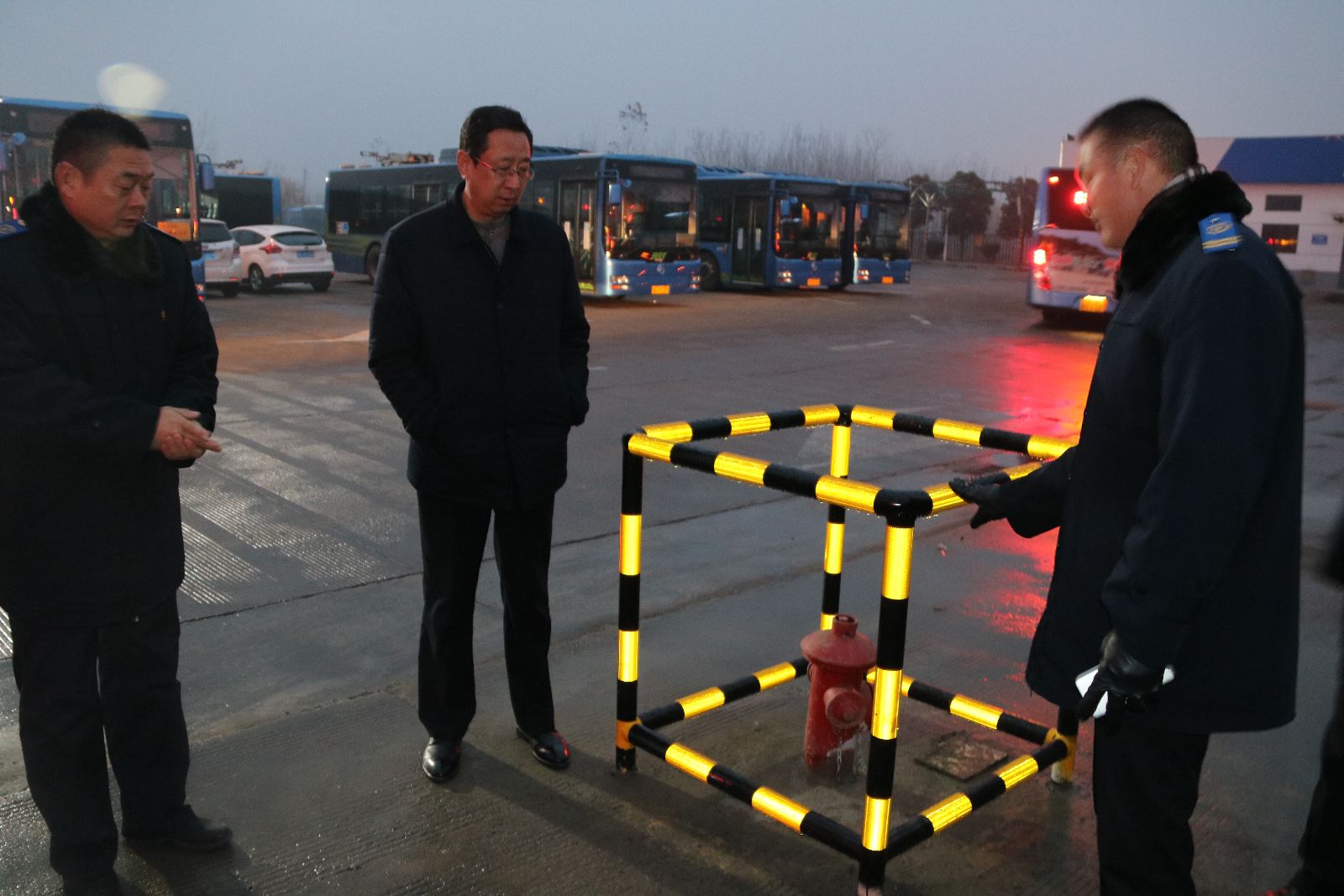 此次檢查以集團黨委書記、總經理劉佃華為組長,由袁軍、于京濤、趙立喜、羅軍、劉永善等班子成員分別帶隊,安全部門、運營單位、維修及充電公司等相關人員組成的檢查組,采取突擊檢查的方式,深入公交各場站檢查門衛在崗、安全交待、消防通道、線路及安全用電情況;維修車間工具分類擺放、倉庫防火措施、乙炔氧氣瓶安全距離及接地裝置是否符合要求;公交車輛技術狀況、應急逃生及消防設施設備是否齊全有效;充電站的充電槍、樁體、急停功能、漏電保護;配電房、設備間的供電系統、絕緣和接地保護、設備間距、應急照明、警示標識、消防通道、出入口門向和檔板、通風設施是否符合標準規范等。