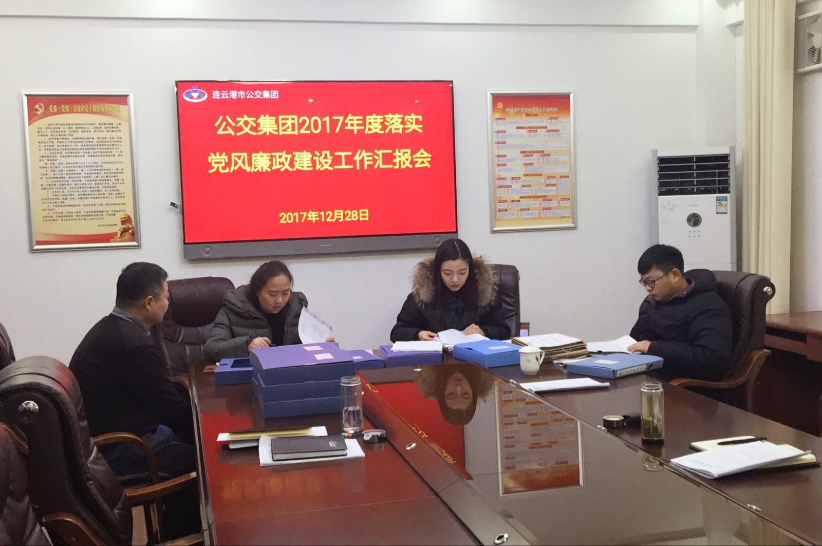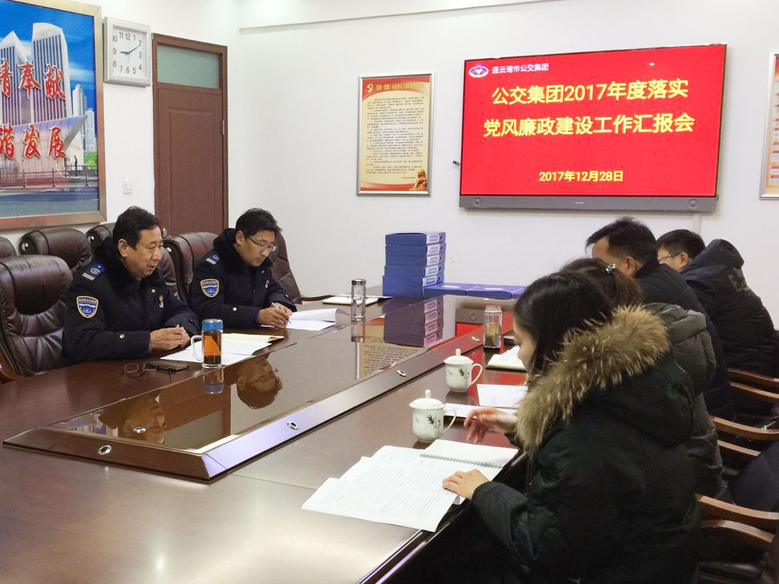12月28日上午,交通控股集團(tuán)監(jiān)察室主任王超、副主任韋曉燕帶領(lǐng)考核組,對(duì)公交集團(tuán)2017年度落實(shí)黨風(fēng)廉政建設(shè)情況進(jìn)行檢查考核。公交集團(tuán)黨委書記、總經(jīng)理劉佃華,黨委委員劉永善及黨群工作部負(fù)責(zé)人參加匯報(bào)會(huì)。