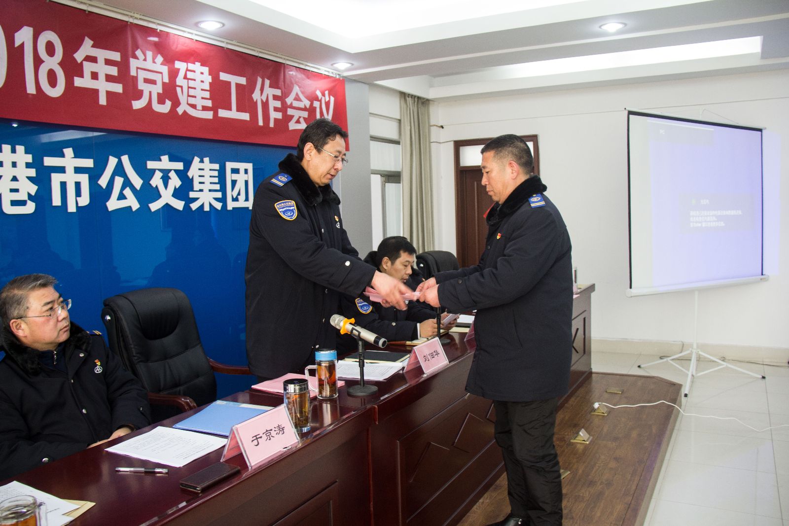 黨委書記、總經理劉佃華同志作題為《學習貫徹黨的十九大精神,推動公交黨建高質量發展,全面提升新時代連云港公交黨組織戰斗力》工作報告,報告以“全面深入學習貫徹十九大精神”為中心,圍繞“不忘初心、牢記使命”的主題教育;推進黨的領導與完善公司治理的有機統一; 深化“兩學一做”學習教育常態化制度化; 加強組織建設,筑牢黨建根基;開展爭先創優活動,做實黨建品牌; 加強企業隊伍建設; 深化“兩個責任”落實; 繼續加強黨風廉政教育等七個方面工作進行了詳細的闡述,為今年黨建工作理清思路,指明了方向。會上,七個基層黨組織負責人分別遞交黨建目標責任書和黨風廉政目標責任書,三個權屬單位作表態發言。同時,大會還學習了市委書記項雪龍在全市目標績效管理總結部署會議上的講話,傳達了《中央紀委二次全會、省紀委三次全會精神提綱》。
