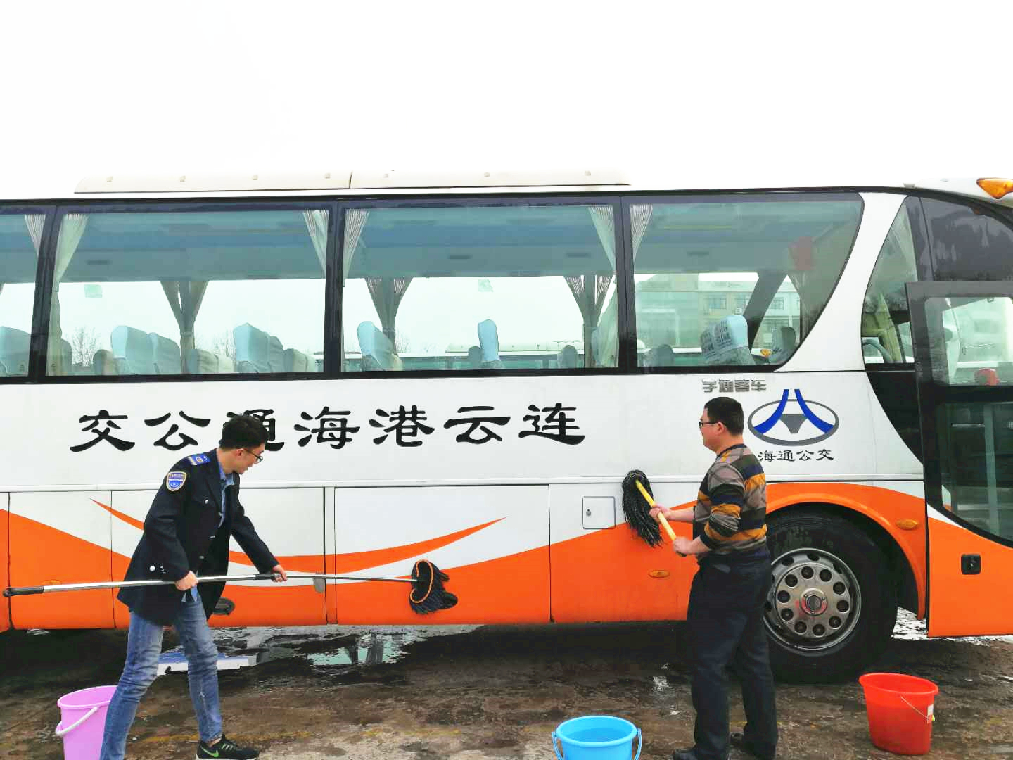 車輛大清洗活動在領導班子的合理分工下井然有序地進行著:男同志們用水槍將車輛周身沖洗干凈,女同志們用準備好的抹布、掃帚、水桶、拖把等清洗工具,將車廂內(nèi)玻璃、扶手、座椅、地面等打掃得干干凈凈。看著一臺臺車輛煥然一新,大家臉上揚起了燦爛的笑容。