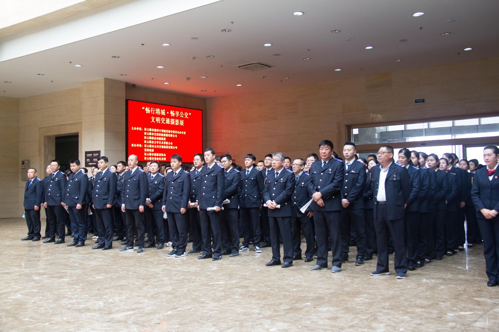 4月28日,由市文明辦、市交通控股集團、連云港報業傳媒集團、市文聯聯合舉辦的“暢行港城·暢享公交”文明交通攝影展在市革命紀念館舉行,市文明辦副主任吳克典,市交通控股集團黨委副書記陳金師,市文聯副主席李敬偉,連云港報業傳媒集團蒼梧晚報副總編顧紅,革命紀念館館長白植明,市攝影家協會主席張曉暉出席攝影展,公交集團黨委書記、總經理劉佃華主持攝影展開幕儀式。