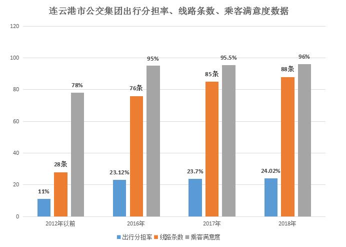 目前連云港公交營(yíng)運(yùn)線路達(dá)88條,擁有車(chē)輛數(shù)1110臺(tái),線路總長(zhǎng)2002.6公里,日發(fā)班次7089班,日均客流量達(dá)22萬(wàn)人次,公交車(chē)輛新能源及清潔能源占比達(dá)96%,公交車(chē)輛空調(diào)化率達(dá)100%,出行分擔(dān)率達(dá)24.02%,社會(huì)滿意率達(dá)96%。