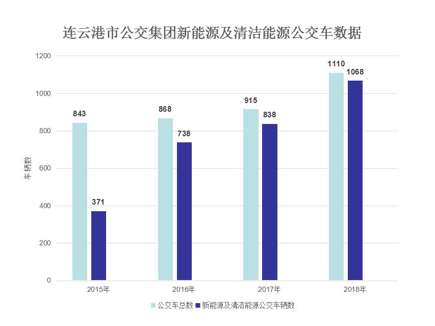 2015年起,連云港市交通控股集團(tuán)公交集團(tuán)加快車(chē)輛更新步伐,先后購(gòu)入了1068輛環(huán)保公交車(chē)(清潔能源公交車(chē)371輛,新能源純電動(dòng)公交車(chē)697輛),淘汰下線黃標(biāo)車(chē)輛566臺(tái),年替代柴油量15988噸,減少二氧化碳排放4.86萬(wàn)噸,節(jié)能減排效果明顯,新能源以及清潔能源公交車(chē)輛占比居全省之首。