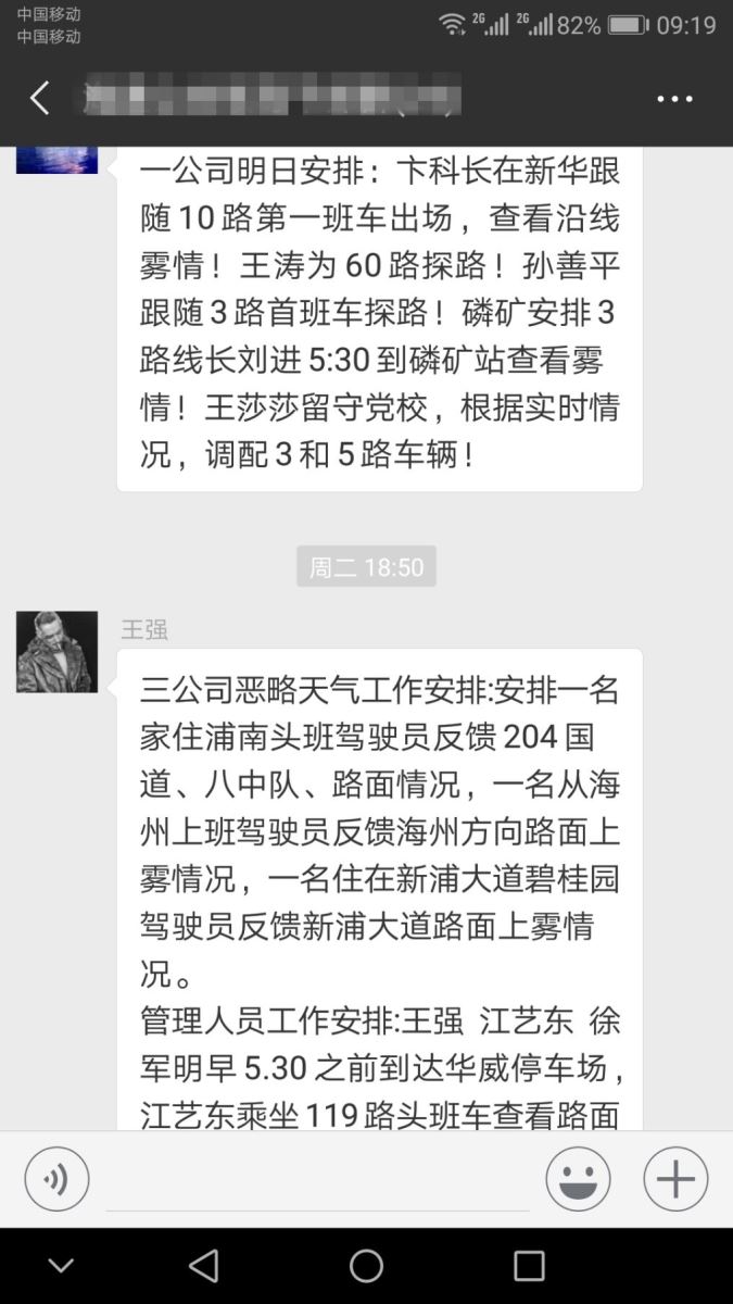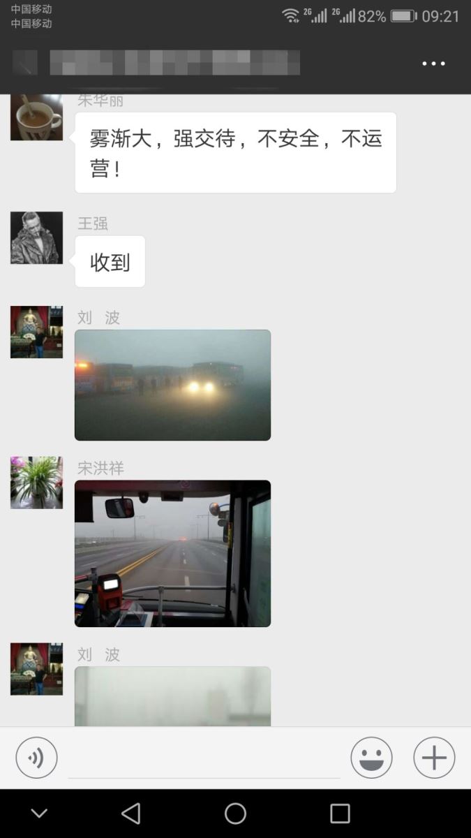 11月27日凌晨,大霧如期而至,公交集團(tuán)海通公交公司微信群早已信息不斷,管理人員全部提前到崗,進(jìn)入“備戰(zhàn)狀態(tài)”。朱華麗強(qiáng)調(diào):一是各分公司要加強(qiáng)工作聯(lián)動性,做到路況信息資源共享。二是期間出場車輛定要加強(qiáng)安全交待,做到不安全,不生產(chǎn)。三是在天氣條件轉(zhuǎn)好的情況下也不能放松安全這根弦,要全方位提升駕駛員安全預(yù)防意識。四是大霧惡劣天氣從11月27日至11月30日,全體管理人員要做好打“持久戰(zhàn)”的準(zhǔn)備,切實做好冬季惡劣天氣安全行車無事故工作。