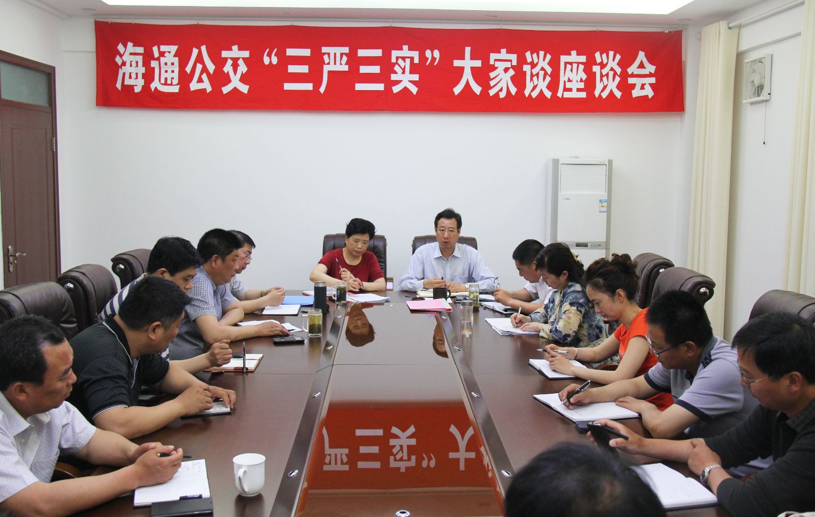 5月24日上午,海通公交開展“三嚴三實”大家談活動,認真學習中央有關文件精神,傳達集團通報的違紀情況。對教育實踐活動第一環節工作進行回頭看。會議要求,公司全體黨員干部要對照“三嚴三實”要求,從嚴修身用權律己,從實謀事創業做人,以海通公交發展新成果,檢驗作風建設的新成效。公司領導班子全體成員,基層單位黨政一把手、公司機關部室主要負責人參加了會議。