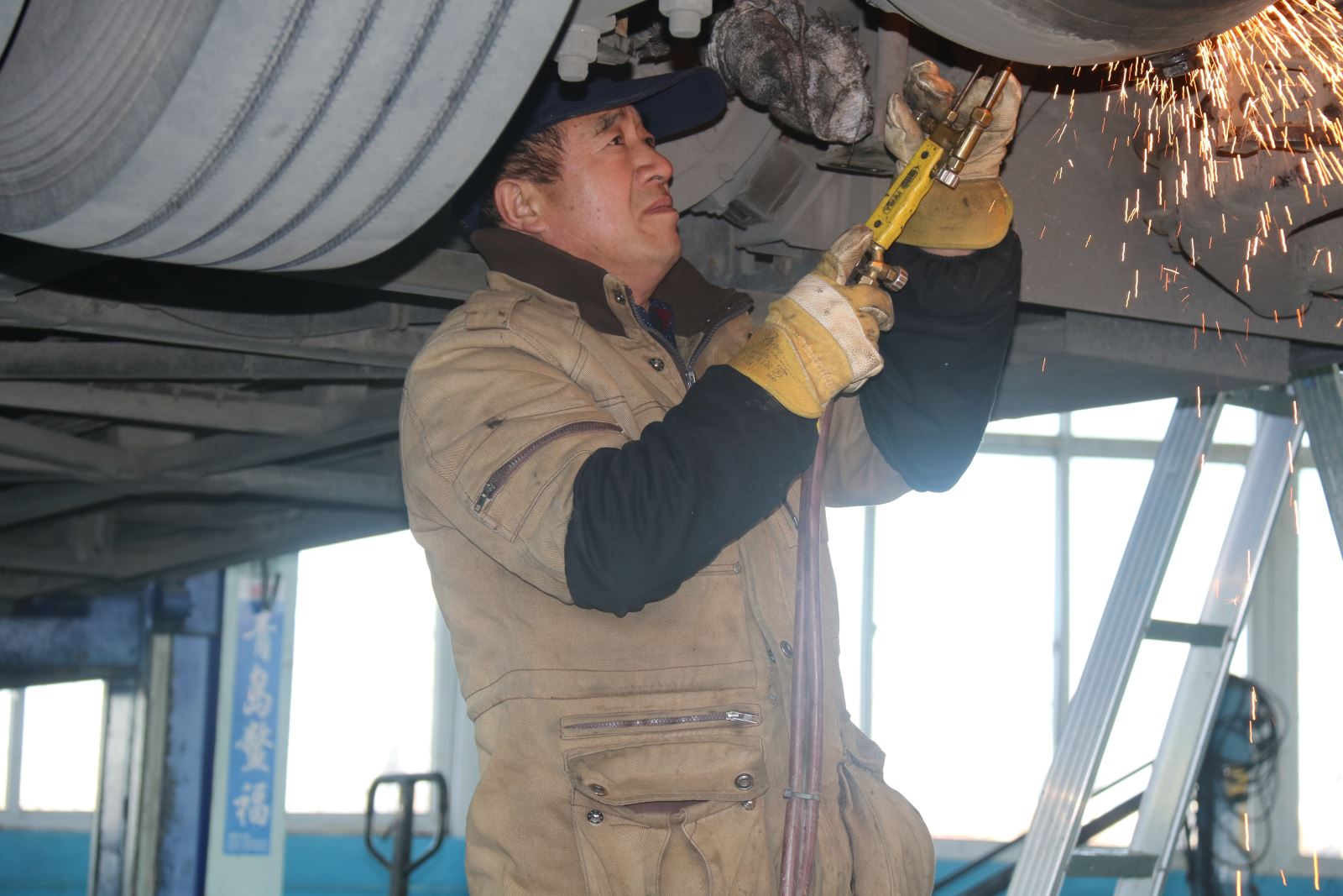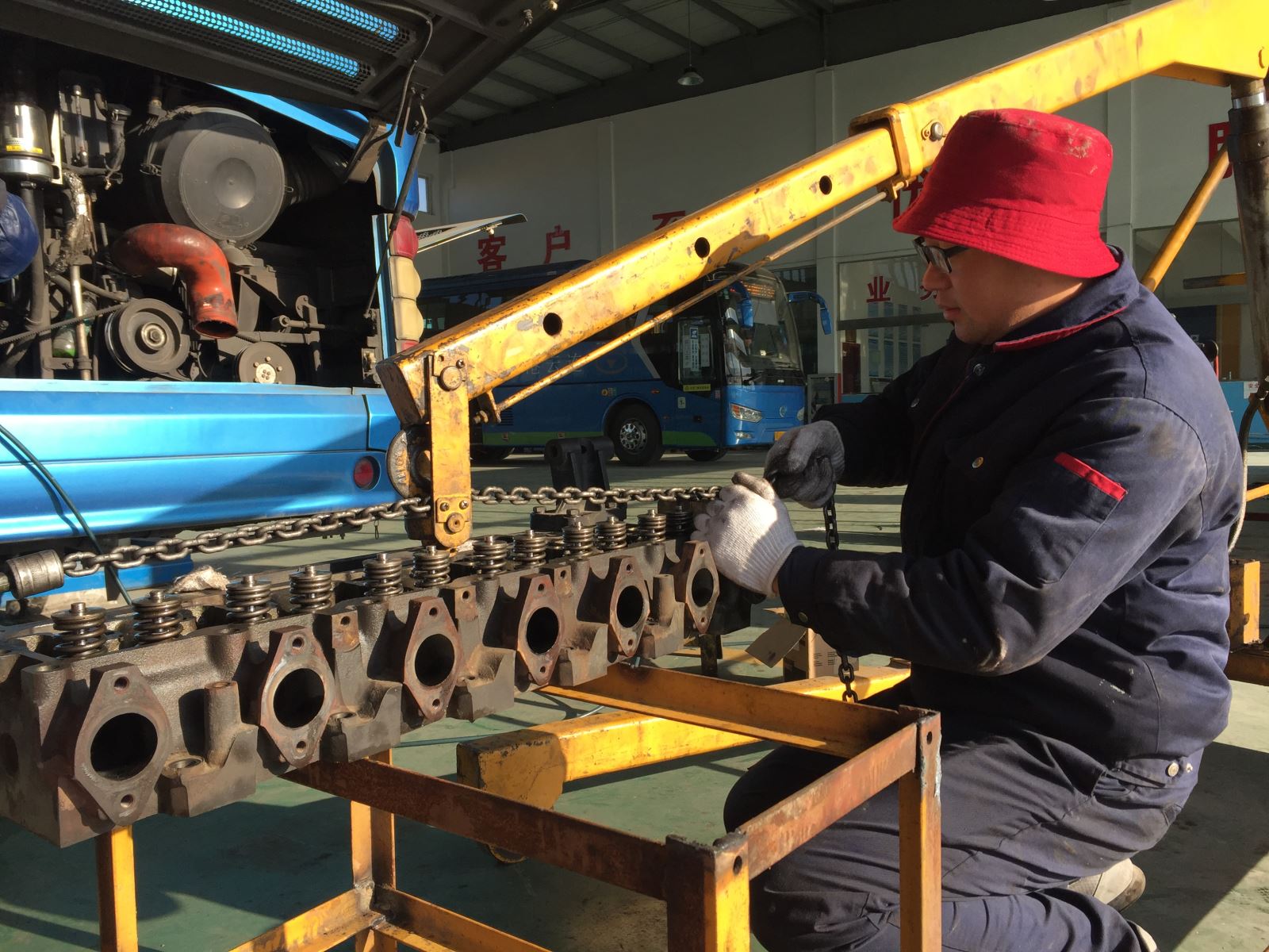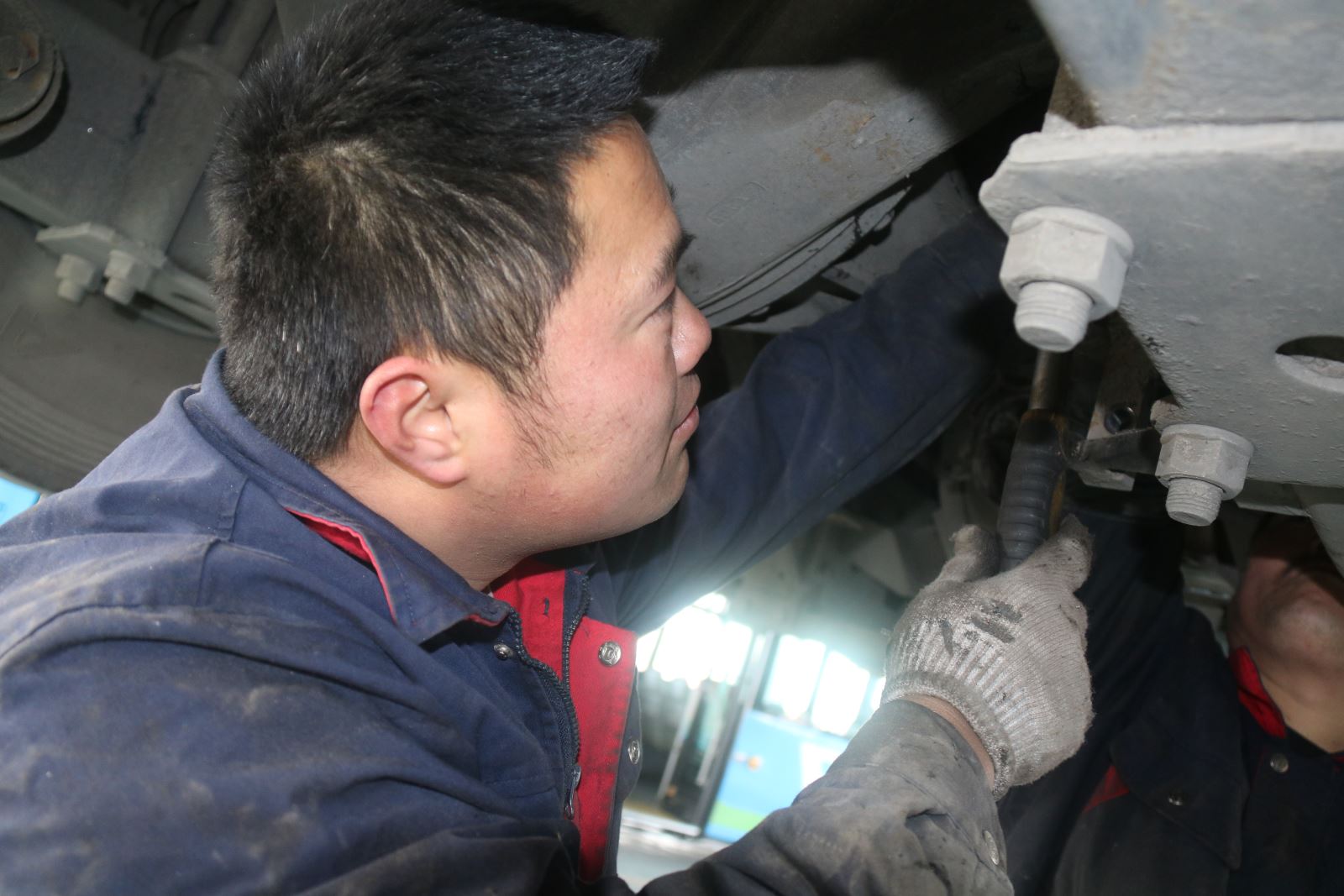 新一年第一天,安機人員認真維護公交車輛,見縫插針檢查車輛的每個細節