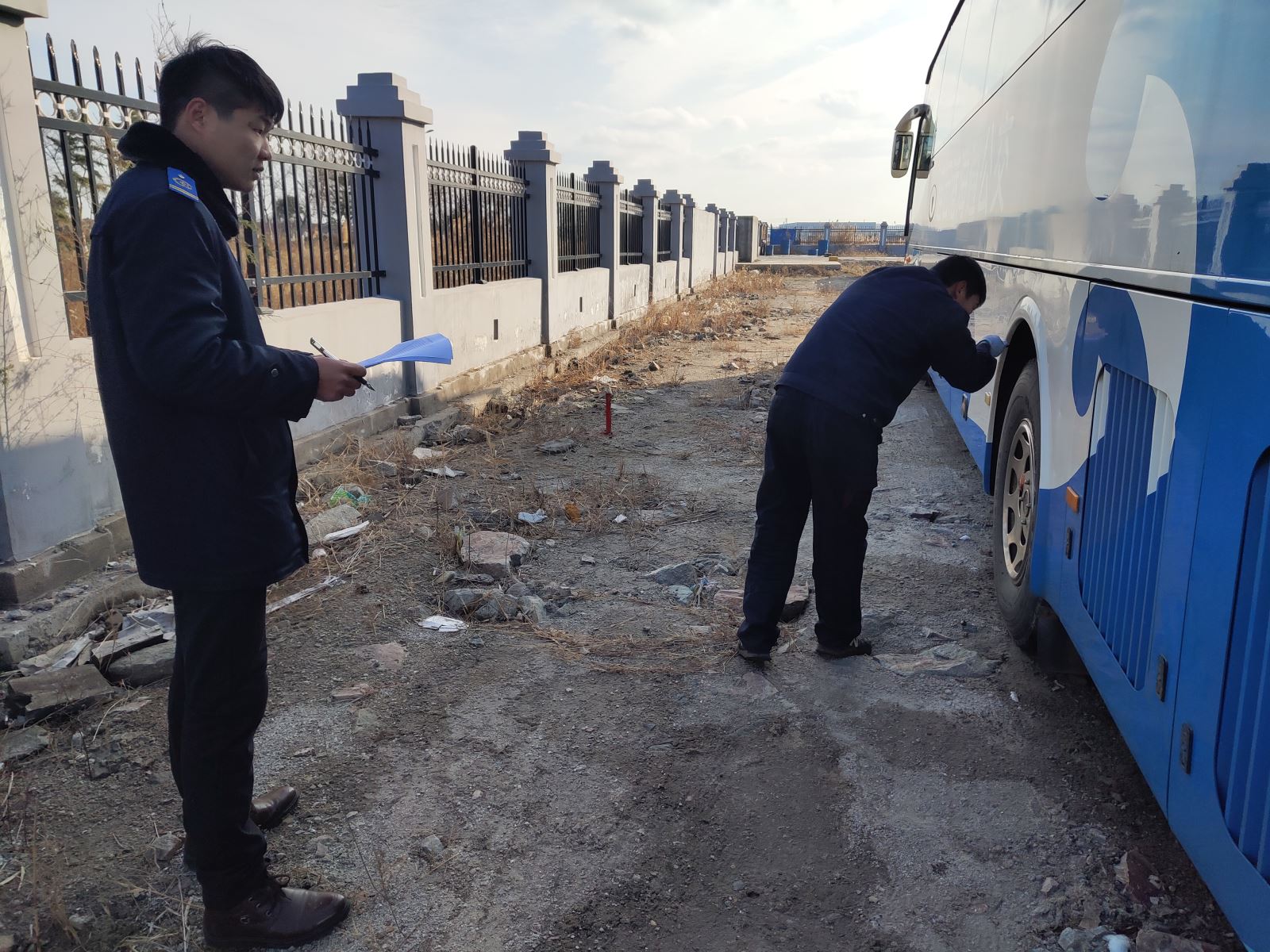 為做好公交車輛安全防范,進一步加強下線待運營車輛技術管理,保證車輛設施設備完好,2月底,公交集團機務技術事業部書記許增磊帶領相關檢查人員來到鹽池西路停車場對下線待運營車輛進行全面檢查,此次檢查內容主要有:一是對車輛的安全部件、車載設施進行逐一檢查,查看有無缺失,確保車輛未經私自拆用。二是根據輪胎胎壓、胎體老化程度對車輛輪胎進行逐一排查,確保輪胎胎壓達到標準胎壓要求。