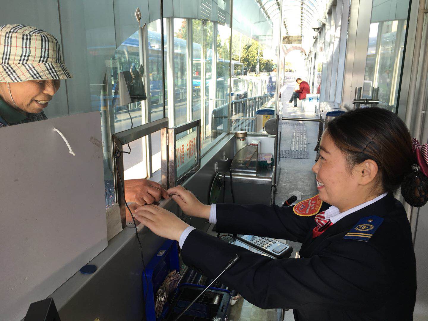 曾經在振華路站臺發生過這樣一件事,那天是站務員王梅值班。一位大爺晚上一身酒氣的要來坐車,開始,王梅只以為是一名醉漢要來找麻煩,后來看他表情是真著急,一直用手指在玻璃上寫著公安,王梅以為要找110。由于這位大爺是個啞巴,幾名熱心乘客上前幫忙最終也沒能理解大爺想要表達什么。在王梅的耐心安慰下,老人把他女兒電話從錢包里掏出來了,經過聯系,終于明白老人是要去公安小區。看著老人進了站坐上車,王梅又主動撥打了老人女兒的電話,告知了車牌號以及公交車到站的大概時間,讓老人的女兒到車站接老人回家。