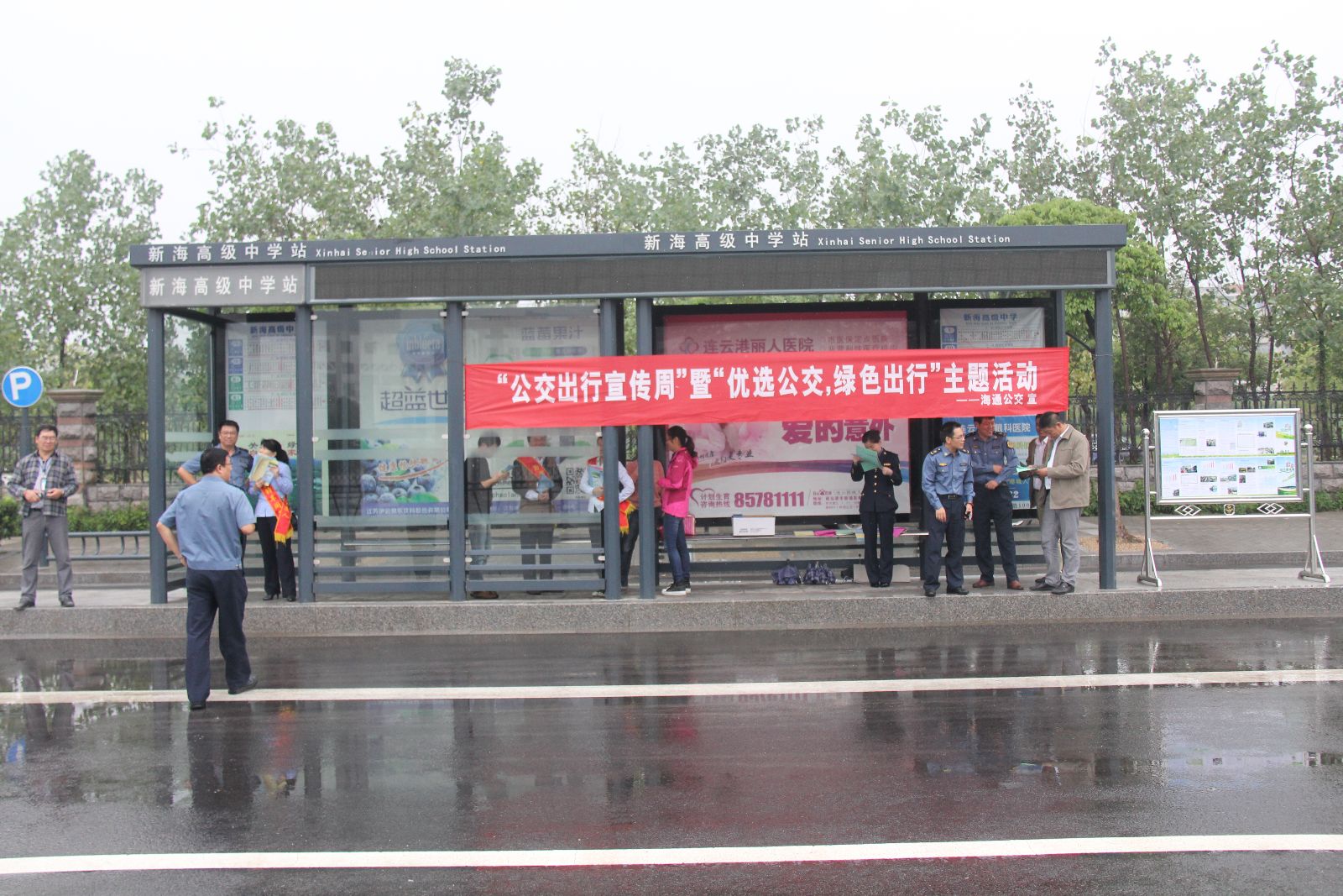 9月18日,在海州客運站、火車站、新海高級中學、一四九BRT站臺四處主要客流集散地設“公交出行宣傳周”宣傳咨詢點,擺放展牌和懸掛橫幅,安排專人宣傳發放《“公交出行宣傳周”宣傳單》、《市區公交線路信息一覽表》、《海通公交十項服務承諾》、《市民卡刷卡須知》等宣傳材料。市民踴躍參加,活動氛圍濃厚,取得了預期效果?;顒悠陂g市區4個宣傳站點共免費發放“公交出行周”宣傳材料800多份,填寫滿意度調查表100多份,收集市民乘客意見和建議15條。