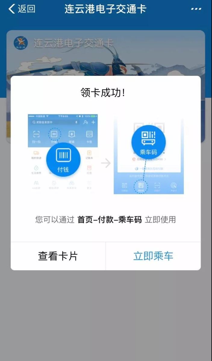 點擊“立即領卡”后,便可使用乘車碼掃碼乘車。