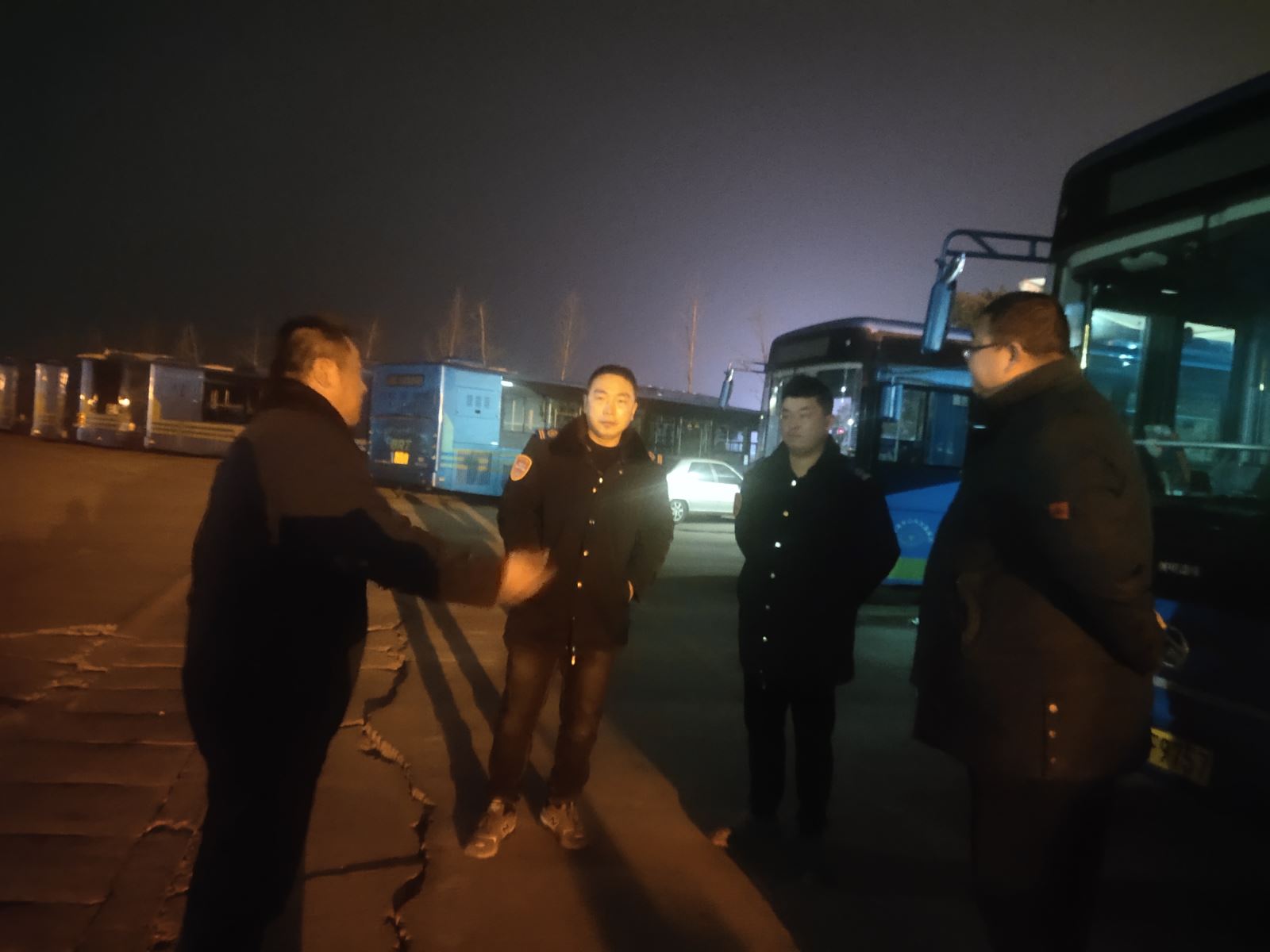 為應對此次惡劣天氣,事業一部提前部署,積極應對,一是提前將所有車輛逐一上例保臺進行例保檢查,特別對車輛排檔線、電池、燈光、雨刮器等進行查看,確保遇惡劣天氣正常使用。二是12月28日上午召開領導班子、科室、分公司負責人惡劣天氣保障會議,會上對本次惡劣天氣做具體工作安排及做好應急保障準備,并要求各科室、分公司負責人叮囑所屬職工,注意上下班安全。三是12月28日晚,安管人員在駕駛員收班時,面對面進行預防惡劣天氣安全提醒,要求嚴格遵守各項安全行車制度,謹慎駕駛,確保惡劣天氣下的行車安全。四是12月29日凌晨4點30分,領導班子、分公司經理、管理人員至各場站查看雨情、雪情,現場查看充電樁是否正常使用及電車電池使用情況,并對駕駛員逐一進行安全交待,對車輛逐車進行燈光、轉向、雨刮器等內容開展檢查,確保車輛正常運營。五是分公司安管人員至各重點路段勘察惡劣天氣情況,將查看的情況及時發布至工作群內,以便及時調配運營車輛,并將信息及時反饋到服務熱線方便客服人員做好解釋工作。六是信息管理平臺工作人員凌晨5點40分全部到崗,進入工作狀態,加強車輛運營狀況的實時監控,特別是對城鄉線路的監控,定時對運營車輛發布“安全行車、謹慎駕駛”短信提醒。七是提前做好應急物資儲備工作,現已儲備融雪劑8噸,除雪鏟、鐵鍬68把,掃把22把,雨衣25件,應急車輛隨時待命。